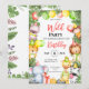 Convide seus amigos para uma encantadora celebração de aniversário com esses convites de festas de criança encantadores! Estes convites apresentam uma bela borda de folhas verdes, adoráveis animais selvagens cada um vestindo chapéus festivos, e segurando presentes ou balões em um estilo aquarela. Esta design divertida acrescenta um toque caprichoso que irá cativar crianças e adultos da mesma forma. Personalize facilmente os detalhes da festa do seu filho de acordo com as suas necessidades. Então, vá em frente e peça as convites de festas dessas crianças hoje e coloque a palco para uma celebração inesquecível!