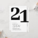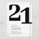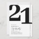 Apresentando um convite de festas aniversário de 21 anos preto-e-branco eterno que combina perfeitamente o encanto do mundo antigo do número de letra serif ousado '21' com um modelo personalizável moderno e amigável. Este convite não é apenas um cartão, é uma marca significativa para estimar o marco de virar 21.