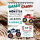Convite de festas de aniversário de 3 anos Monster Truck Boy