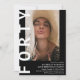 Convite para aniversário de 40 anos moderno - Design apresenta um fundo preto que pode ser alterado para qualquer cor, uma fotografia retrato, o texto 'QUARENTA' em letras brancas a negrito e um modelo de bolsa mensageifesta de aniversario elegante que pode ser facilmente personalizado. Na moda, tendências e perfeito para qualquer idade!