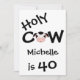Convite de festas de aniversário de 40 anos de Vaca Sagrada e Humorada Personalizado a Preto e Branco para Homens e Mulheres.