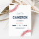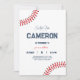 Bata em casa com o nosso convite de aniversário no tema do baseball. Apresentando um design elegante com pontos vermelhos e fontes clássicas de baseball, este convite captura a essência do jogo em um estilo limpo e subestimado, perfeito para qualquer celebração de aniversário de um fã de beisebol.
