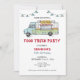 Convite à festa de aniversário de Truck, Comida divertida, com pintura manual de aquarelas e de linhas, Você pode usar este convite para Aniversário, Graduação, Festa de Bloco.
