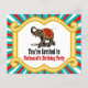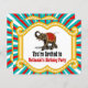 Tema do Circo Personalizado, para todas as ocasiões. Esse design de elefante é um toque de excelente para o colecionador ou amante dos paquidermes. Um elefante índio é enfeitado com um pano vermelho nas costas, para o circo ou outra ocasião, com bruxelas vermelhas e uma peça decorativa do pescoço, com uma engrenagem turquesa divertida, fundo vermelho-listrado e luzes de circo ao redor do perímetro. Ele tem o porta-malas para boa sorte. Design Copyright © CustomInvitesOnline.
