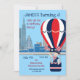 Convide seus convidados para a Festa de aniversário de 4 de julho do seu filho com esta linda ilustração original! É cheio brilhante e colorido! Este Convite de aniversário do Dia da Independência é facilmente personalizado para o seu evento adicionando os seus detalhes. Na frente, ele mostra um garoto com uma bandeira americana. Ele está desfrutando de uma carona em um balão de ar quente. Ele está vestindo uma camiseta com estrelas e listras. Você encontrará um quadro de estrelas vermelho, branco e azul no verso deste convite. É ideal para um nascer de garotinho nesta data histórica e um quarto partido temático de julho.