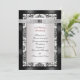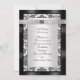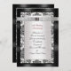 convite de festas do aniversário 25 elegante borda formal de damascos preto e branco com fitas de satin e corações prateados