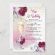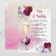 Um convite moderno para festas de Natal Véspera de ano novo com vidro de champanhe e florais, brilho de ouro. Tema de diversão. Aquarela e brilho dourado.