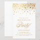 Feliz ano novo! Convide familiares e amigos para a festa de Ano Novo com este convite de festas de Ano Novo personalizável. Ele apresenta pontos de confete dourado, roteiro elegante e tipografia simples. Personalize adicionando seus próprios detalhes. Este convite de festas de Ano Novo de ouro está disponível em outras cores e estoque de cartão.