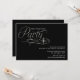 O Convite para o Partido da Véspera deste Ano Novo tem um fundo negro com o Partido da Véspera de Ano Novo escrito no topo em branco e uma prata brilhante de tendência. Há uma estrela brilhante e na moda rodopia abaixo da festa. Na parte inferior direita, você pode personalizar facilmente isso com as informações de sua parte.