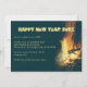 Convite de festas de Ano Novo de Bonfire. Placas horizontais escuras e azuis com dois locais para texto personalizado em amarelo. Uma imagem de fogo em gravação de um lado com texto alinhado à esquerda. Perfeito para uma celebração ao ar livre em um clima quente ou uma fogueira na praia.