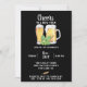 Vidro de cerveja, caneca, saltos e trigo pintado em fundo negro, Convite de festas de Ano Novo. A parte traseira da placa apresenta o padrão de estilo de pub.