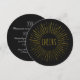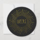 Estes convites elegantes e na moda são perfeitos para uma festa de Ano Novo! Estes são cartões de excelente para festas de negócios, festas de família ou uma reunião com amigos. Eles apresentam um fundo preto texturizado com um círculo de explosão. Dentro a explosão é a palavra "Saúde". As costas contêm espaço para todos os detalhes da sua festa.