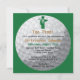 Você pode personalizar todo o texto deste convite de festas de aposentadoria temido de golfe. O design apresenta um golfista verde vestindo uma camisa marcada e segurando um clube de golfe em uma grande bola de golfe com texto verde e dourado. O plano de fundo é uma cor verde distribuída com seu número de telefone e email para RSVP. Você pode alterar a fonte também se quiser usá-la para personalizá-la. Altere o texto para usá-lo também para um convite de aniversário. Perfeito para o amante do golfe obcecado ou viciado em golfe.