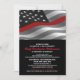 Bandeira Patriótica dos EUA e design de linha vermelha fina para estes convites para aposentadoria de bombeiros.