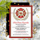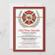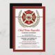 Maltês clássico, design e linha vermelha fina para estes convites de festas de aposentadoria de bombeiros.