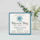 Convite de festas de aposentadoria bonito, colorido e moderno com flor de água azul pastel. Convidado para comemoração formal de aposentadoria de um escritório corporativo elegante, homem ou mulher. Excelente ano para festas de primavera, verão, outono ou inverno.