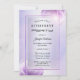 Convite de festas de aposentadoria com um elegante design lilás roxo com flores sobre fundo de cintilação de aquarela.