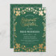 Este convite de festas de reforma clássico tem um toque de vintage e apresenta uma borda floral ilustrada e a menção "Celebração de aposentadoria" numa cor dourada (folha de ouro simulada). O plano de fundo mostrado é um verde Kelly, mas pode ser personalizado para qualquer cor que você escolher. O verso do convite inclui um padrão de quatrefoil de cor dourada com um plano de fundo verde correspondente que também pode ser trocado. O texto é personalizável para o seu evento especial.