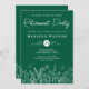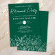 Convites de festas de aposentadoria de flores verdes com flores em uma linha moderna. Personalize nomes, datas e informações.