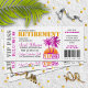 Convite de festas de aposentadoria de "cartão de embarque", tema tropical divertido. Personalize todos os detalhes para sua próxima celebração.
