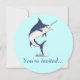 Este convite para uma festa de aposentadoria é decorado por um Atlantic Blue Marlin. Para itens correspondentes, digite "penguincornerstore marlin" no bar de pesquisa do Zazzle.