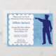 Concurso de aposentação único para uma equipe de aposentadoria ou uma guarda de segurança. Design tem um oficial apontando as palavras do convite. Fácil de personalizar com os detalhes da sua festa.