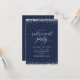 Este elegante e festivo convite de festas de aposentadoria de 3,5" x 5" apresenta um confete prateado (folha simulada) com letras correspondentes que dizem "Partido da aposentadoria" em uma bela fonte de script. A cor de fundo é marinho azul, mas pode ser alterada para qualquer cor de sua escolha. Personalize o convite com suas próprias informações - uma maneira fácil e simples de criar um cartão personalizado. O verso da placa apresenta um padrão de linha pontilhada prateada correspondente - novamente com um fundo azul marinho que pode ser personalizado para qualquer cor do seu gosto. Uma maneira simples e elegante de convidar convidados para comemorar uma aposentadoria.