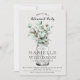 Convite de festas de aposentadoria de folhagem botânica do eucalipto do jardim russo. Eucalipto e camada de algodão em um fundo de textura creme de linho. Tipo de face aberta elegante contrastado com uma tipografia de script de estilo floral.
