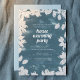 Bem-vindos amigos e família à sua nova casa com este elegante Convite de festas de Aquecimento Doméstico, com um quadro floral de cor aquosa em branco contra um fundo azul nebuloso. A design combina a sofisticação moderna com um toque botânico clássico, criando uma atmosfera quente e convidativa para sua celebração. É fornecido espaço amplo para todos os detalhes do evento, informações de RSVP e seu novo endereço, fazer fácil de compartilhar a entusiasmo de se mover com os entes queridos. Ideal para anúncios de "nós nos movemos" ou "eu me movi", este cartão celebra seu novo capítulo em estilo.