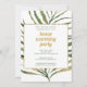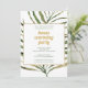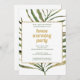 Convide amigos e família para comemorar seus novos começos com este elegante Convite de festas de Agregação Doméstica Palm Leaf, projetado com um vintage botânico e art nouveau inspirado. O design de captura de olhos apresenta folhas verdes e douradas em volta dos detalhes do evento, nome do casal e novo endereço residencial para um visual sofisticado. Perfeito para anunciar uma mudança de endereço e RSVP, este cartão de na moda torna a celebração do aquecimento doméstico quente, memorável e acolhedora para todos.