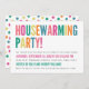 Convide amigos e família para comemorar sua nova casa com esses convites de festas ousados, na moda e coloridos! Este design apresenta um padrão de confete colorido no verso.
