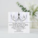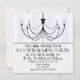 Um convite de festas sofisticado de inauguração de casas, que ilustra um candelabro de cristal. O plano de fundo é constituído por faixas verticais azuis e brancas. O lado oposto apresenta um fundo listrado azul e branco. A seção dela tem um molde preto. Personalize o texto em preto com detalhes do evento. Procure itens correspondentes, como postagens, artigos de papelaria e adesivos na Paperie da Jill.