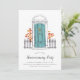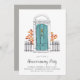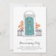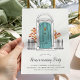 O encantador convite de festas de aquecimento doméstico apresenta uma ilustração de porta esboçada em azul-aqua moldada por tijolos, com o seu tipo de evento personalizado (mostrado com "festa de inauguração") na letra de programas de caligrafia. Personalize com seus detalhes de celebração abaixo.