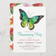 Convite para comemoração da festa de hortelã tropical. O convite apresenta a cor lacrimogênea azul-turquesa e flores tropicais.