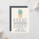 Convide amigos e família para comemorar na sua nova casa com estes convites para o aquecimento doméstico de abacaxi tropical com uma vibe de safra da ilha. Design apresenta o abacaxi, o símbolo tradicional da hospitalidade, com "festa de inauguração" e detalhes do seu partido em marinho azul.