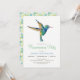 Convite para comemoração da festa do beija-flor. O convite apresenta um Hummingbird verde e azul e um padrão floral.