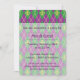 Este convite apresenta um padrão harlequin de verde e roxo se transforma em um argilo lúdico com uma camada de contornos de diamante de ouro e flur de lis, criando um padrão divertido e colorido perfeito para qualquer celebração de New Orleans influenciou Mardi Gras. A parte inferior da placa tem algum texto de exemplo que você pode personalizar para criar um convite personalizado para sua festa ou evento, e a parte traseira apresenta um fluer de lis padronizado em um fundo argyle esmaecido para aquele último toque especial.