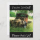 Um caminhão enferrujado sentado num campo de erva à sombra de uma árvore. Adicione seus detalhes e detalhes do partido para criar um convite único e gentil para qualquer celebração.
