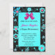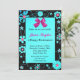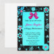 Um convite preto elegante perfeito para qualquer mulher se aposentar. Ele apresenta uma cor aquamarina no centro com uma borda preta ao redor da borda. A fronteira tem flores brancas e cor-de-rosa. Um gráfico de um arco cor-de-rosa está no topo. Você personaliza todo o texto.