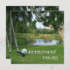 Convite de festas de aposentadoria com tema de golfe, com imagem de terreno de golfe.