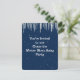 Flocos de neve e ícones em fundo azul para um convite para uma festa de inverno. Todo texto é editável.