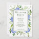 Este convite de festas de boas-vindas da hydrangea azul é perfeito para a sua festa. São lindas flores de aquarela e o tipo limpo o tornam espantoso, moderno, mas clássico! É muito fácil fazer esses convites selecionando Personalizar este modelo e digitando em suas informações. Num instante você pode ver como seus convites serão lindos!
