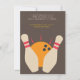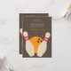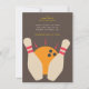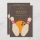 Um pino bola de boliche é apresentado neste convite moderno que pode ser usado para aniversários, torneios de ligas de boliches ou outros eventos.