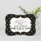 Convite de festas de Bolinhas de Folha Preta e Dourada. Personalizar para qualquer evento.