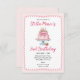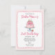 Estes convites de aniversário apresentam um bolo de aquarela cor-de-rosa com um arco de fita amarrado à sua volta.