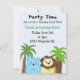 O pequeno tigre e sotaque de leão mais bonitinho neste convite de aniversário da selva divertida. Palmeiras soprando ao fundo. Personalize com todas as suas informações pessoais conforme desejado. Um convite para zoológico divertido.