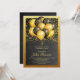 Balões negros e dourados e convite de aniversário de confete dourado para qualquer idade ou sexo.