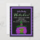 O Convite de festas das Bruxas Adultas do Dia das Bruxas é um design único de uma foto pessoal de uma bruxa com um cabelo roxo brilhante e grandes olhos azuis na frente da carta, juntamente com os detalhes da festa do Dia das Bruxas. O fundo é listras pretas e roxas. A parte de trás do cartão são listras roxas pretas e néon. Esta design chamará a atenção do seu convidado e fará com que eles fiquem animados com a sua reunião espetacular! Escolha de excelente para uma noite assustadora com as garotas! ・ modelo fácil disponível para preencher os detalhes de sua festa. ・ Também compre produtos compatíveis com este design aqui nesta mesma loja online: JennLenayDesigns