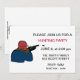 Um caçador com uma arma com palavras dizendo por favor junte-se a nós para uma festa de caça faz um convite legal.