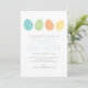 Convide seus amigos, família e vizinhos para uma caçada divertida de ovos da Páscoa com este doce convite. Apresenta quatro ovos ilustrados de Páscoa. Personalize todos os detalhes da festa.